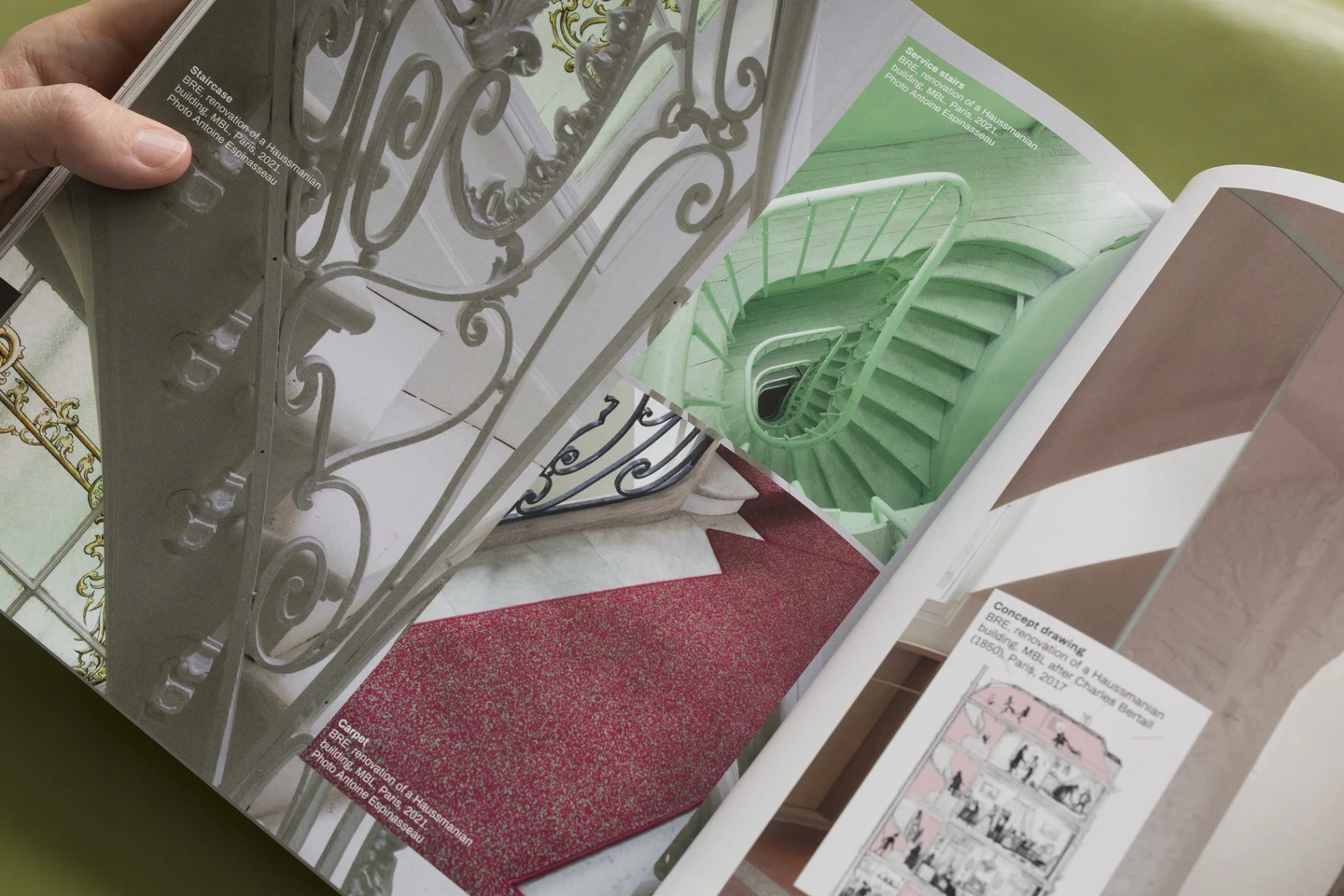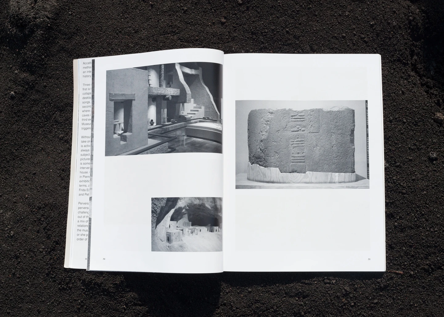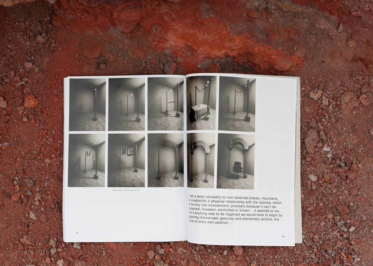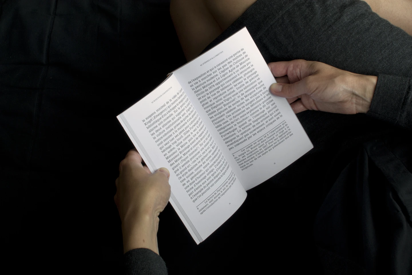 The publication is structured around five photographic series, each devoted to a particular building, site or architect: Château de Chambord in France, Dilmun Burial Mounds in Bahrain, Jože Plečnik’s buildings in and around Ljubljana, Río Tinto in Spain, and Victor Horta’s Centre for Fine Arts in Brussels. It is, especially, a book of (hi)stories in which the series by Maxime Delvaux are accompanied by texts. For these, various authors have been invited to react to the images with the idea of experimenting with the text: fiction, historical essay, round-table discussion, scientific text and photonovel. Graphic designers played with text and images to give them form. The reader is in turn invited to create possible alliances between images and texts. Like Maxime Delvaux’s photographic approach, these texts and their articulation with the photographs are specific to each subject, illustrating five ways of showing and telling about places near and far.