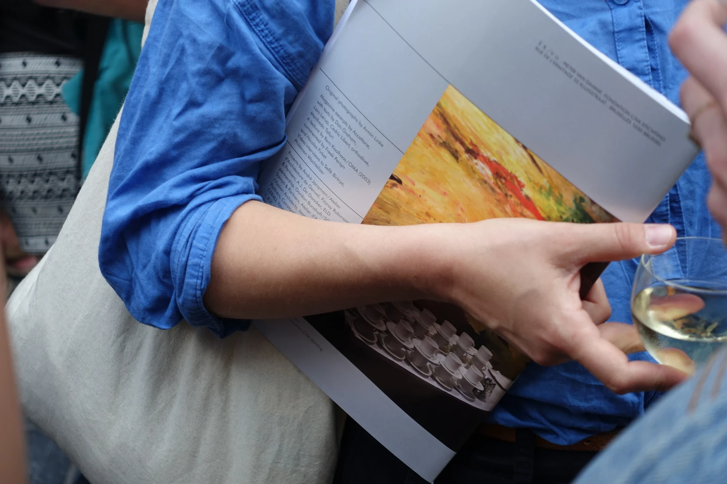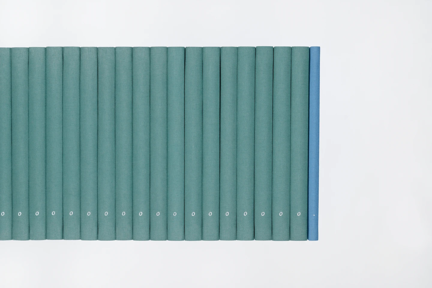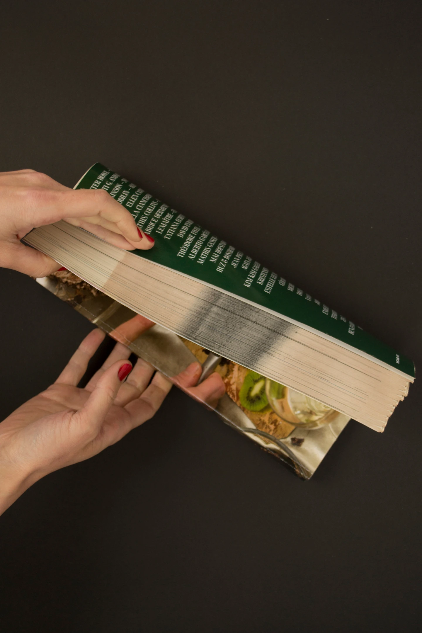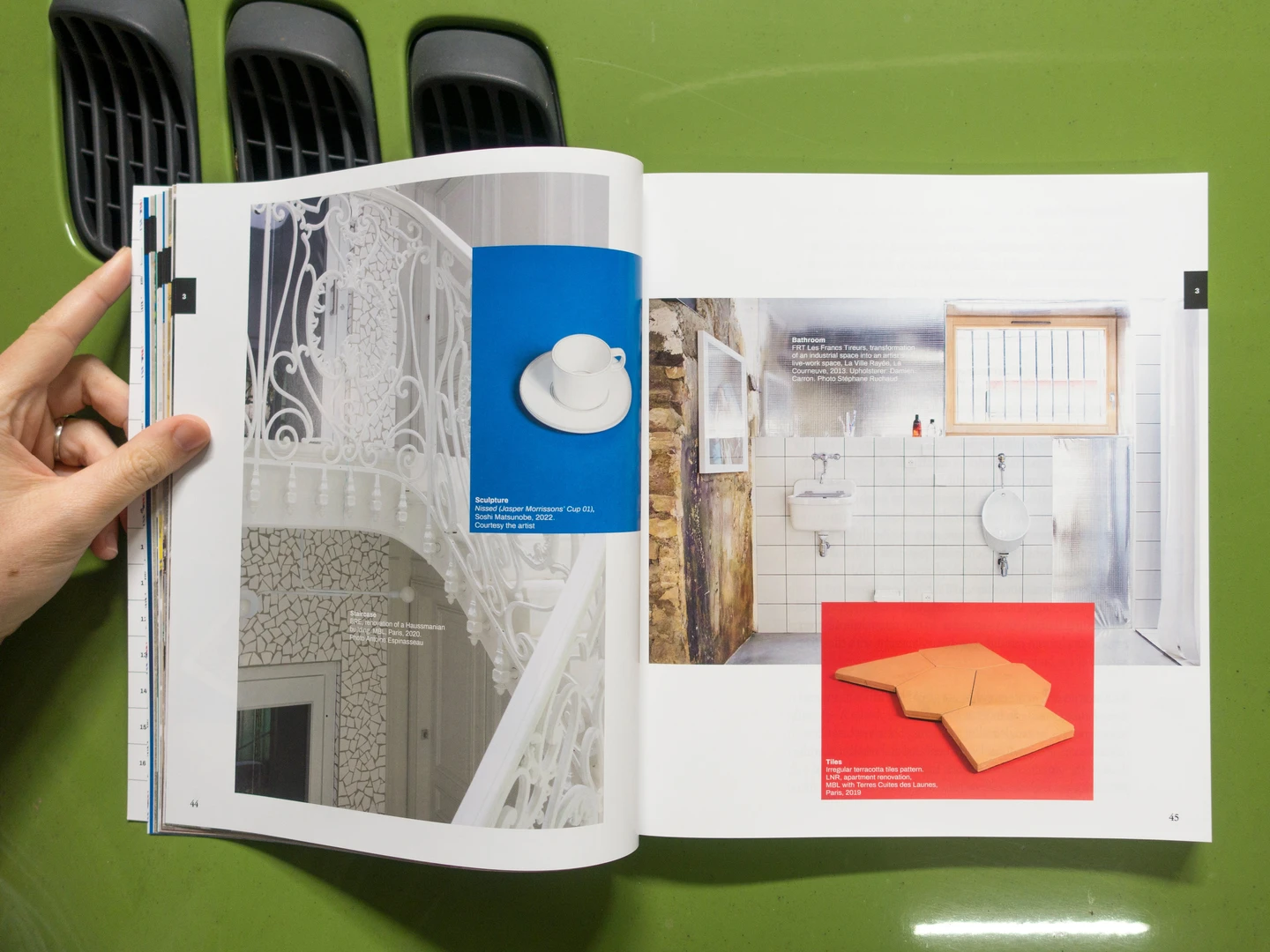 In this edition of YEAR, the seasons are introduced with musical notes by Jean-Yves Evrard, mirrored with images of scattered glasses by Tatiana Echeverri Fernandez. Anthea Hamilton painted the sides of the pages: Each book is a piece of the puzzle of a pile of eighteen YEARs.