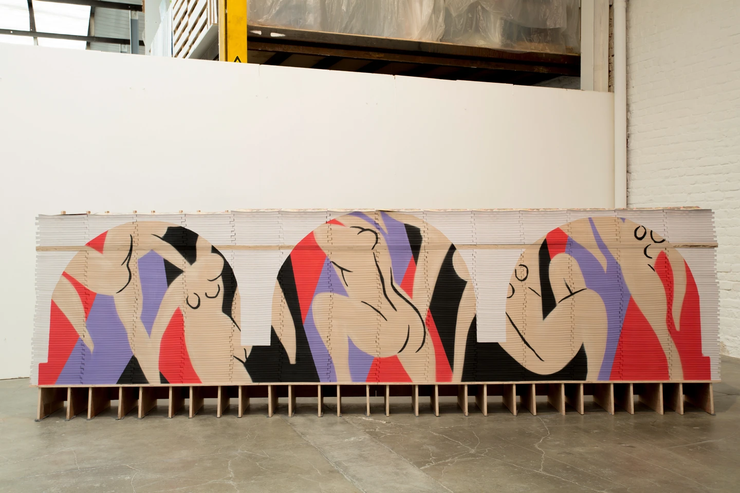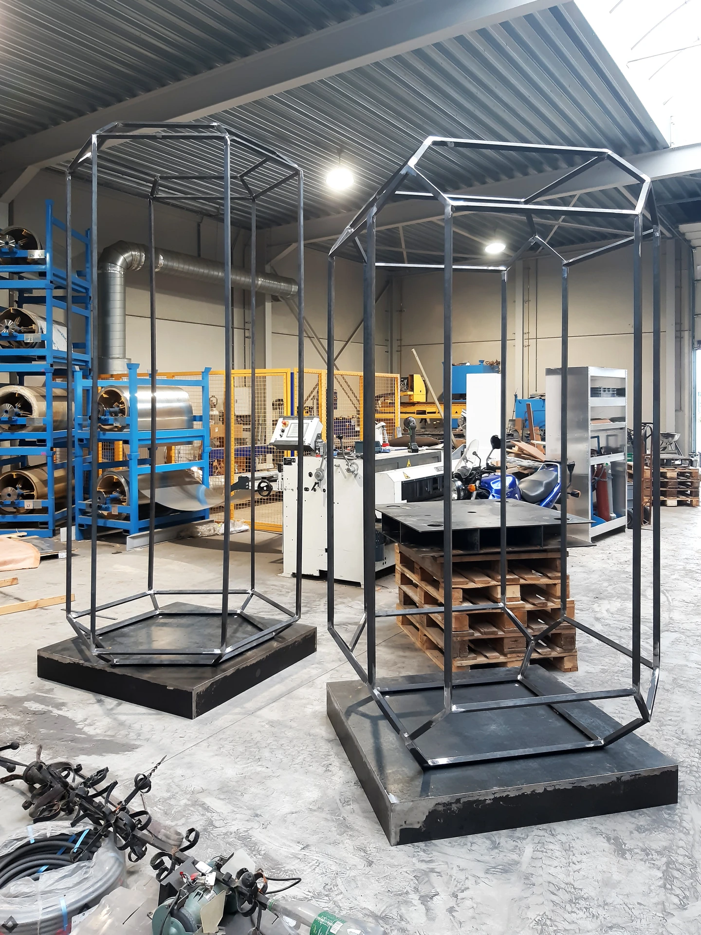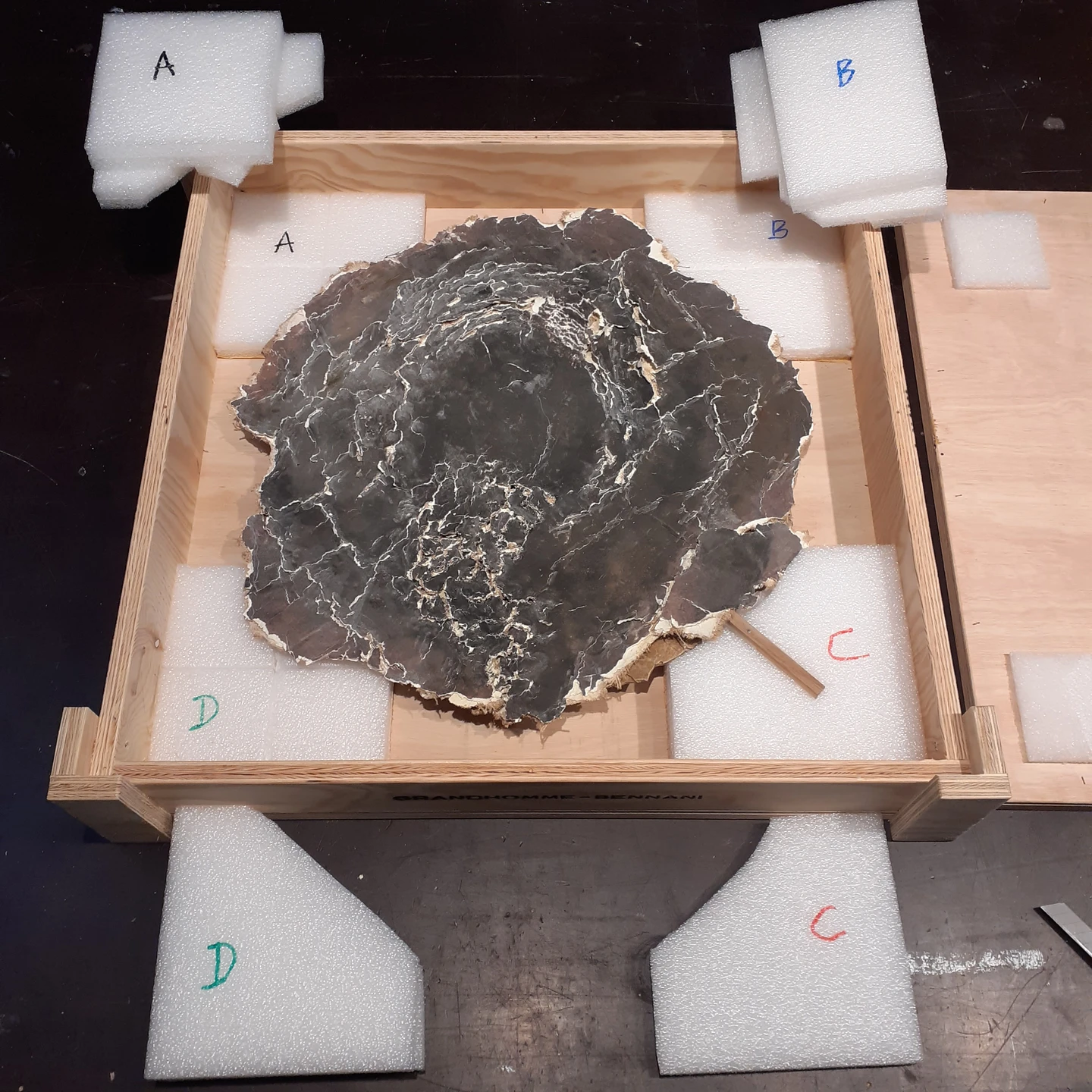 Fabrication de caisses de transport, emballage et livraison à la Galerie Imane Farès, Paris.