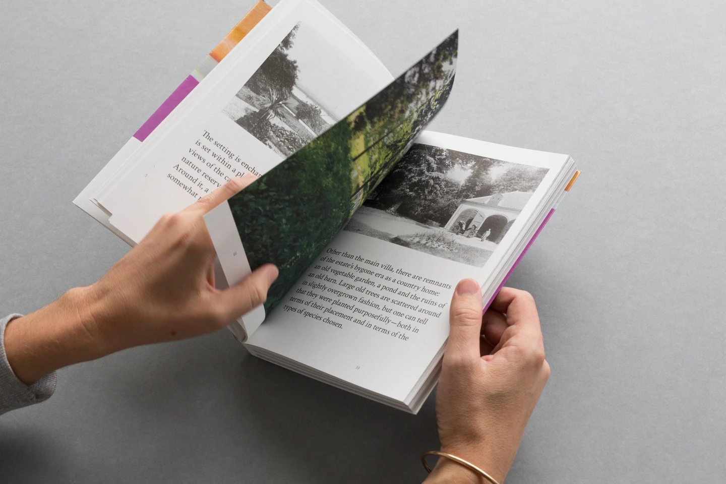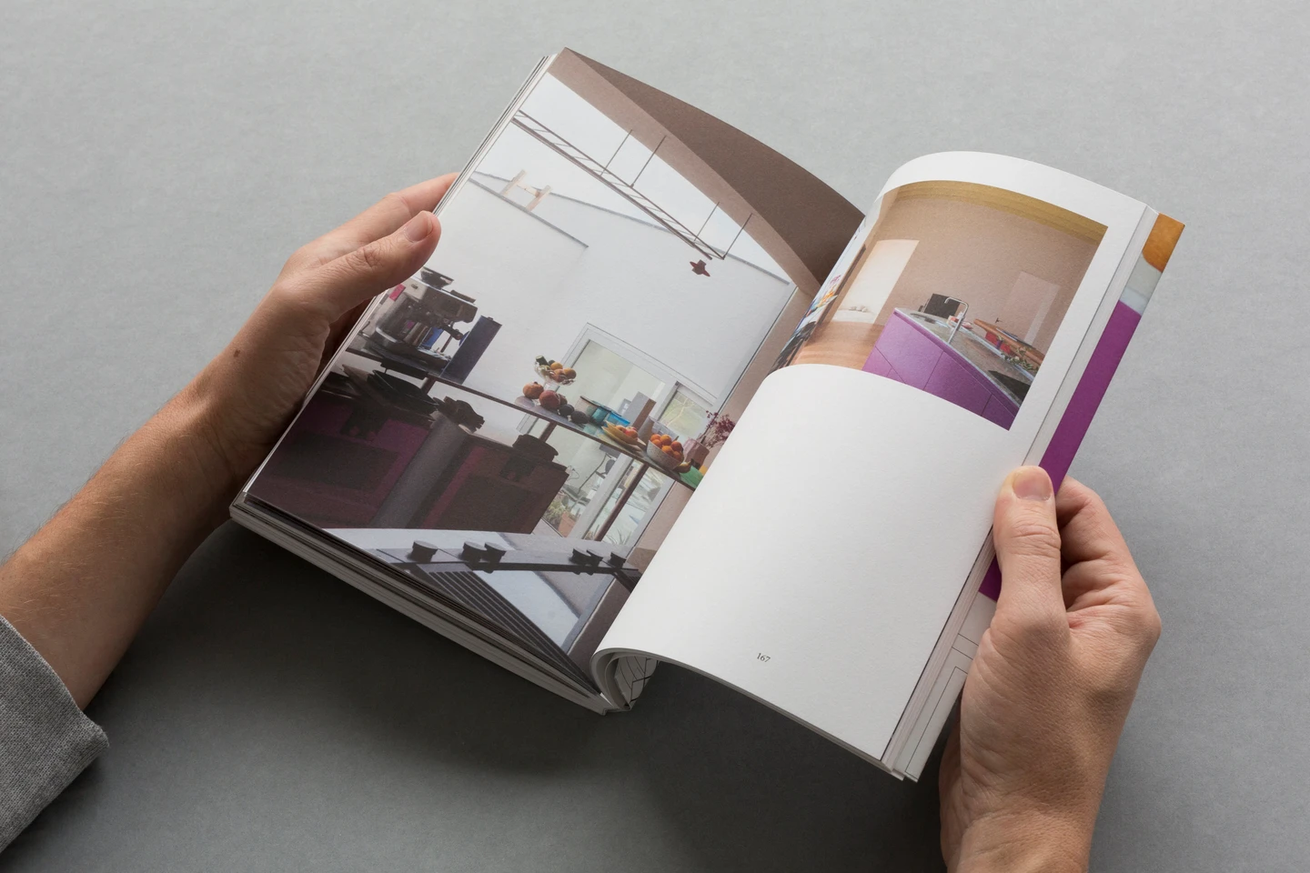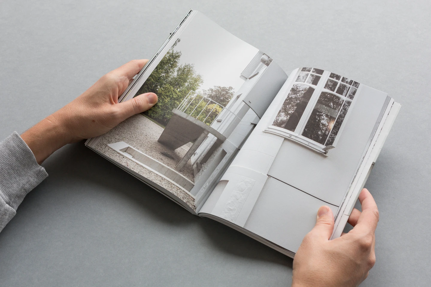 To emphase the book's title and tone, its classic design combines caracteristics such as an airy grid type set in Garamond, two tones of white high bulk paper, mass tinted cover pages and matching hotfoil on waxed linen hardcover.