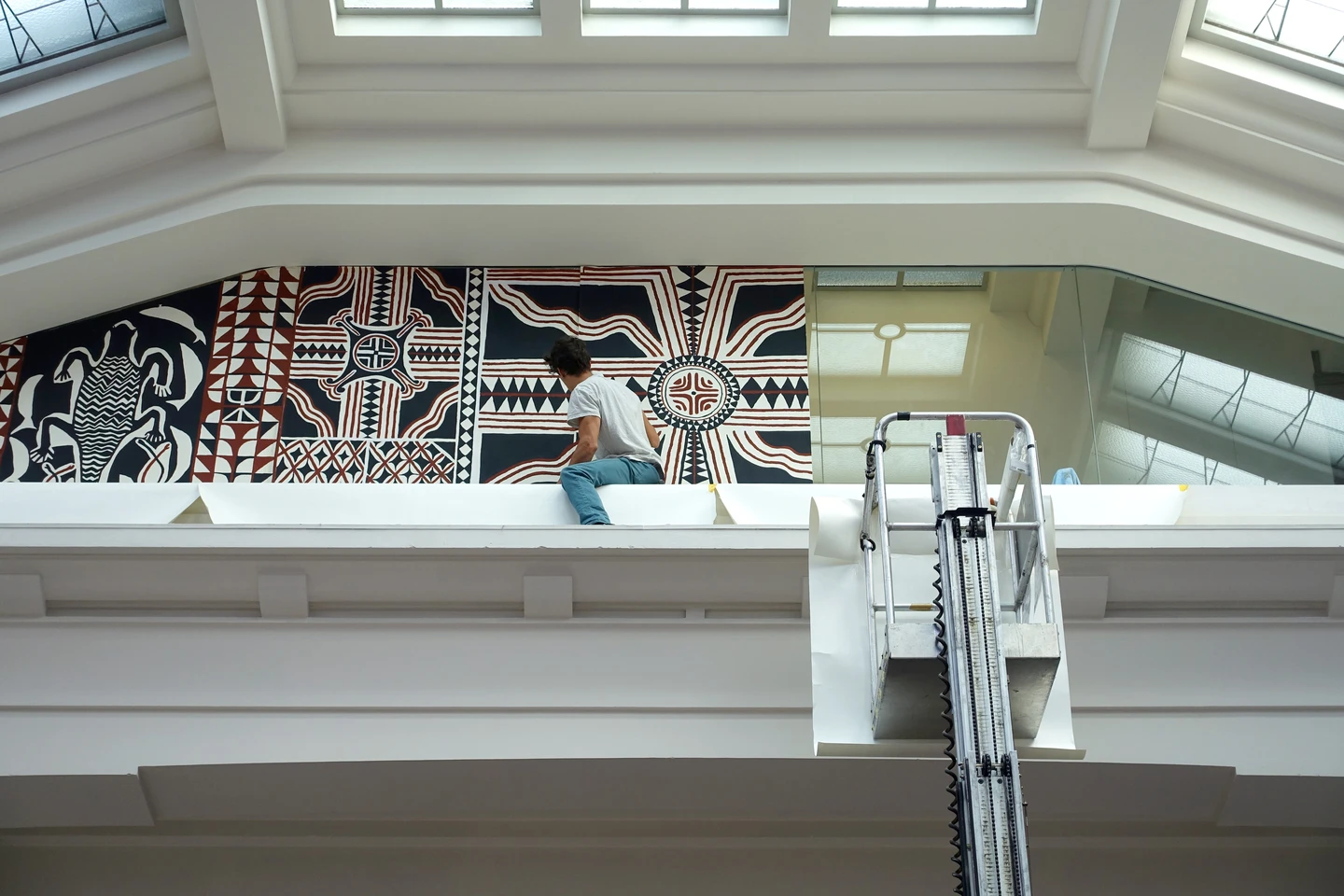 Part of the installation The Virgin and Child with Saint Anne and the Infant Saint John the Baptist ('The Burlington House Cartoon'), after Leonardo, Ali Cherri, 2022