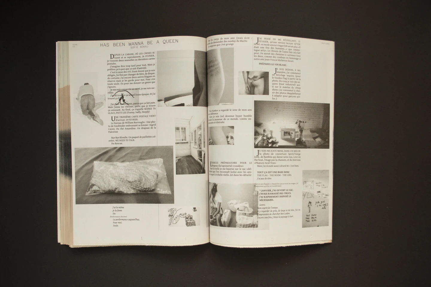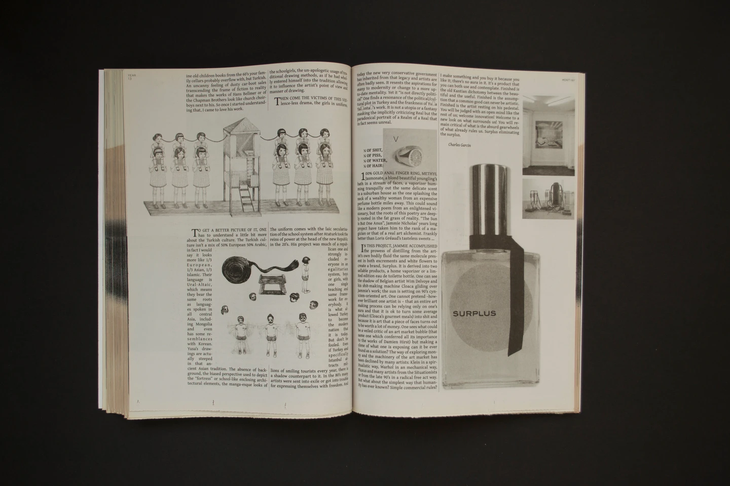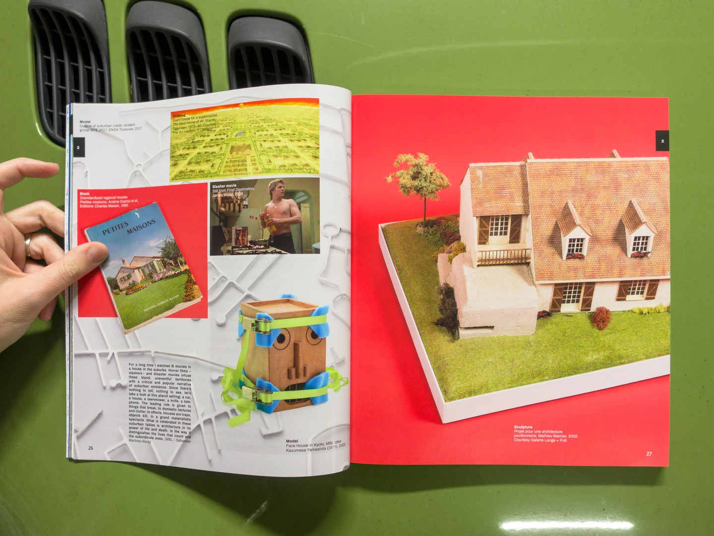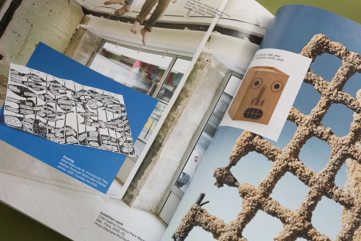 The book plays with the codes of various popular types of publications such as the mail-order and household goods catalogues, fashion magazines, choose-your-own-adventure books, sciences outreach ; in the rich iconographic compositions as well as in its ergonomy with wider pages and specific insert, or in the multiple options of navigation through the content.