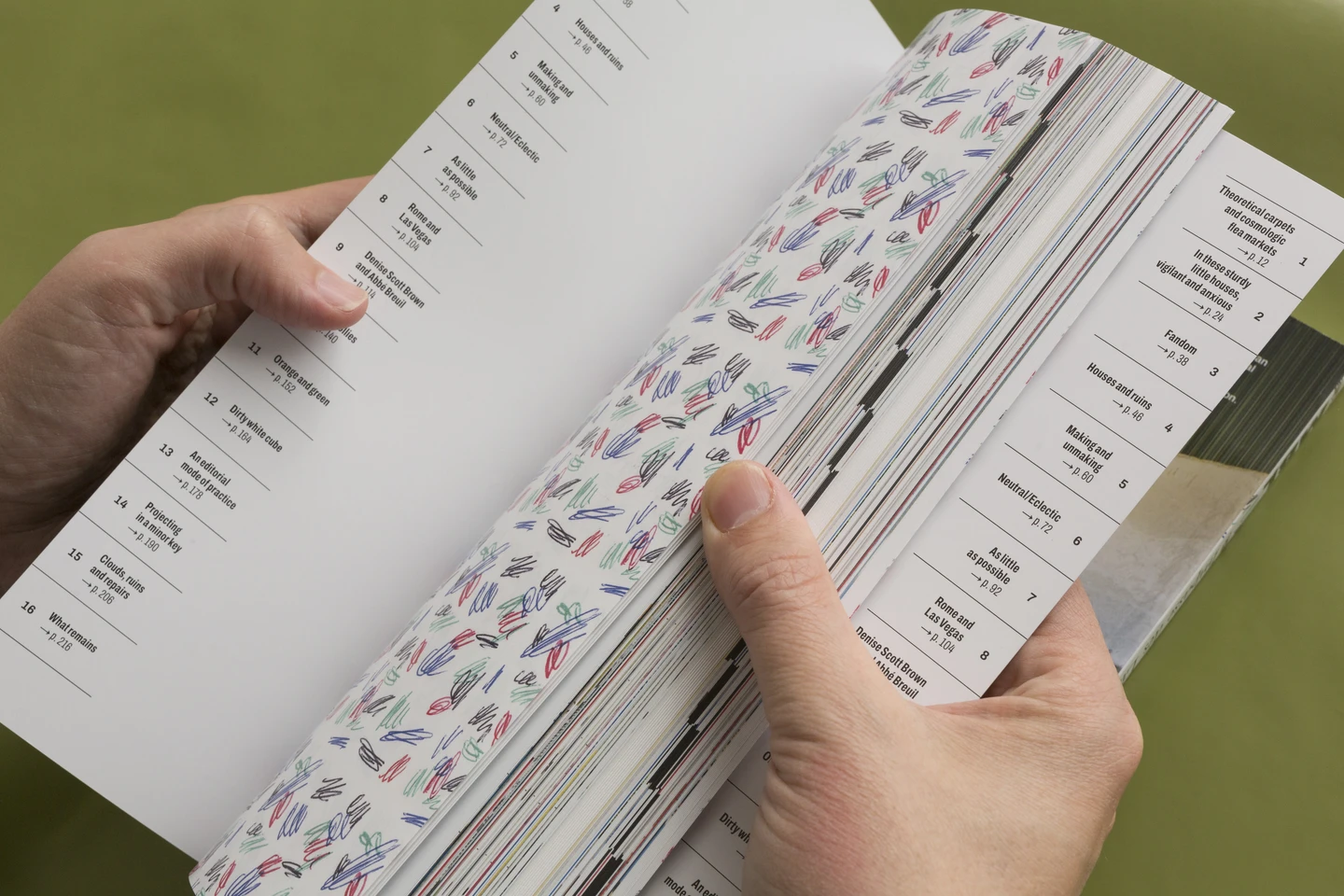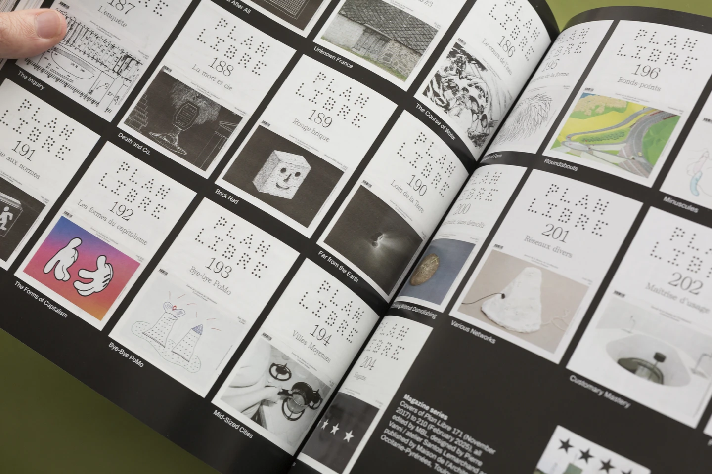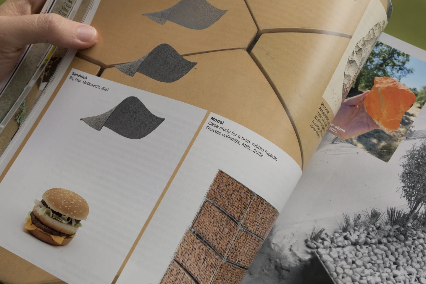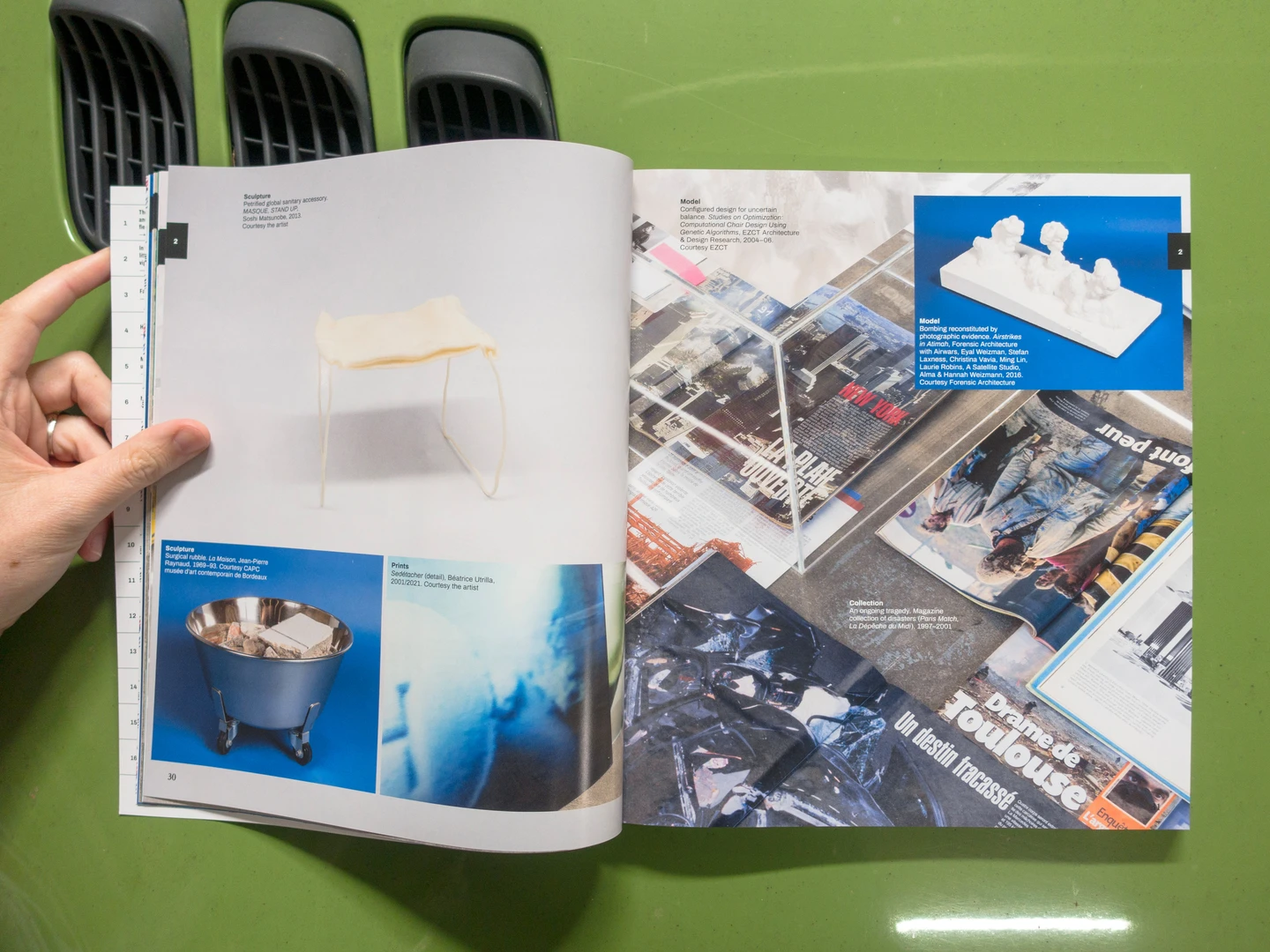 The book plays with the codes of various popular types of publications such as the mail-order and household goods catalogues, fashion magazines, choose-your-own-adventure books, sciences outreach ; in the rich iconographic compositions as well as in its ergonomy with wider pages and specific insert, or in the multiple options of navigation through the content.