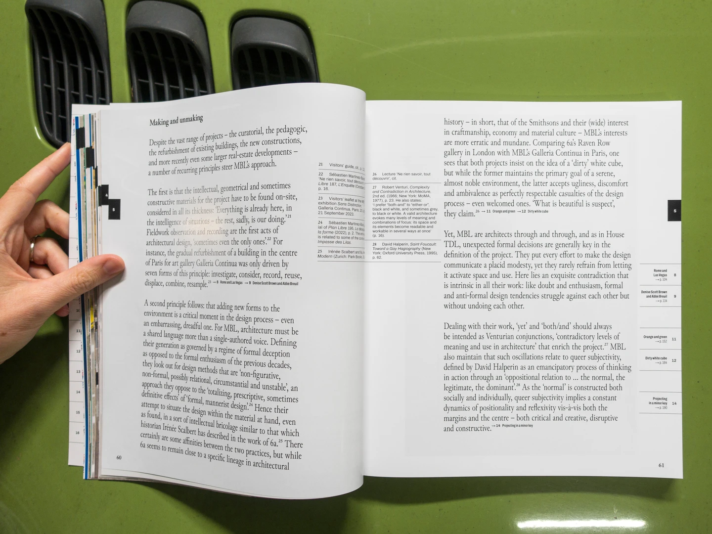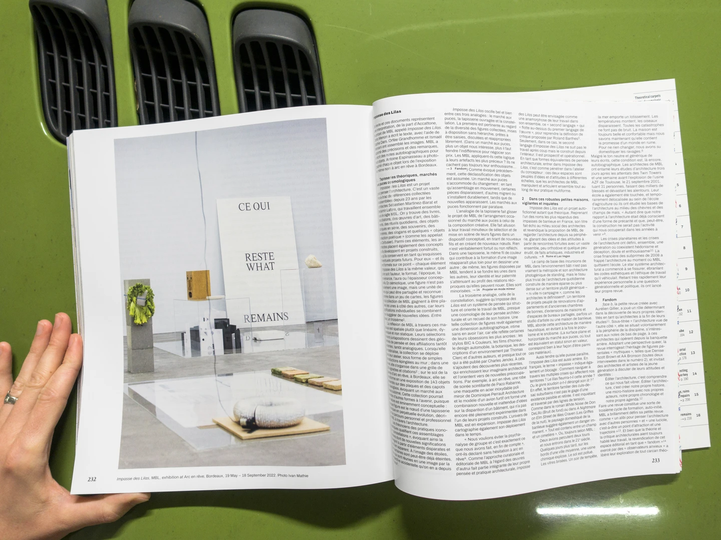 Keeping up the tension between exhibition catalogue and monograph, Impasse des Lilas explores the interweaving of theories, personal histories, objects and projects that define the architectural practice of MBL.