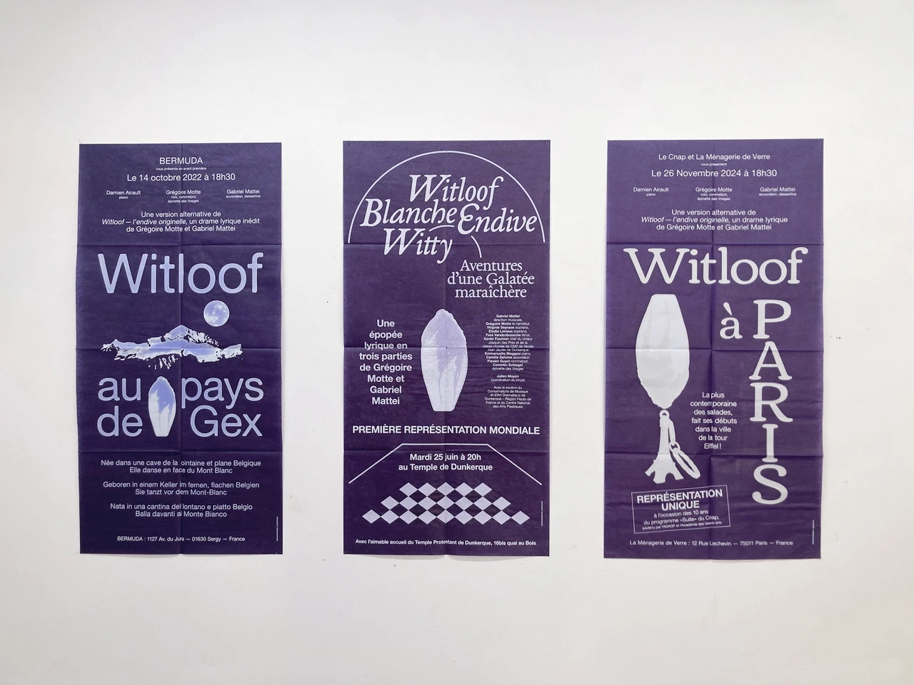 Première et troisième parties de La Trilogie de la chicorée, l'ouvrage Witloof & Witty constitue un livret-partition en deux parties tête-bêche, venant compléter le premier drame lyrique de Grégoire Motte et Gabriel Mattei, Blanche Endive.