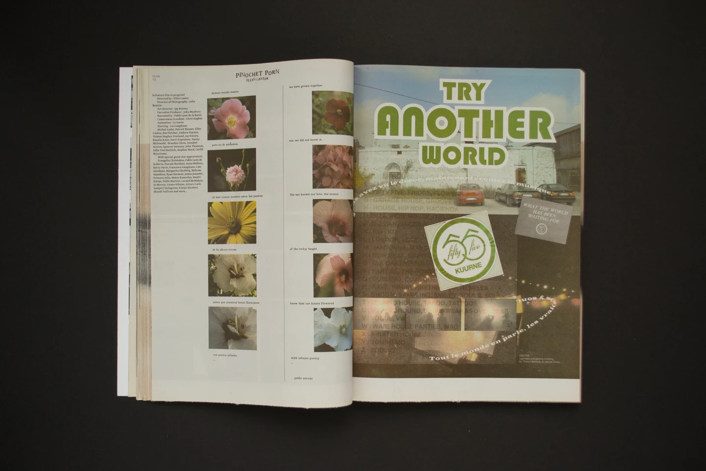 This second YEAR is still an almanac, a choral book revealing behind the stage. Seasons are information. Hey, look at what has been done, should be or will be or never be. This issue is like talking with images. You can connect one page to another. Text can be spare, descriptive or exhaustingly disruptive. What have you done means what it will be. We asked people about what’s in their mind from the past or for the future and that creates an all present. Last time, we talked about no future, now we are no present. YEAR is still a chain reaction, organizing its content in the form of sequences. YEAR is still an experimental constellation.