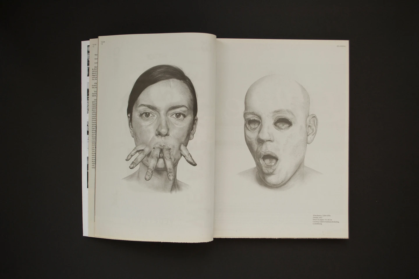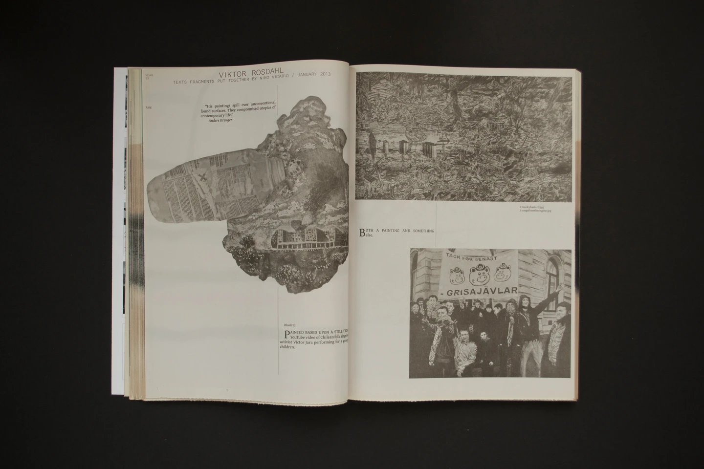 YEAR is the annual yearbook showcasing a subjective, abstract, moving scene. The third issue of YEAR is, again, an almanac, a programme, a diary and a lot of glam shit handsome gorgeous terrific “blah blah blah” gathering together more than 85 prospective and retrospective contributions. Theory, poetry and narration mingle with the visual in what unravels, page after page - a landscape full of details and perspectives. On the one hand it is a printed exhibition, on the other a garden hosting an experimental barbecue with dead lipstick and redneck zombies, plus a lake and a few books. Can you smell that? Where does this come from, huh? And discussions behind every bush and column.